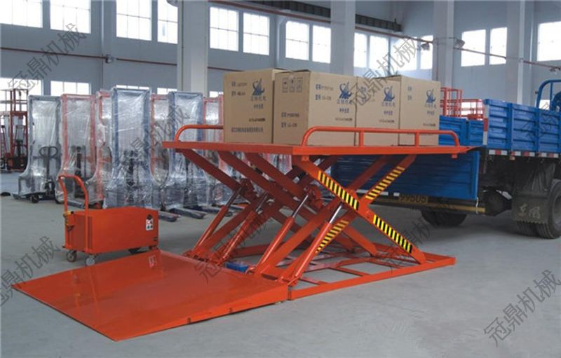 本設(shè)備滿足在不挖地坑的情況下完成裝卸貨,設(shè)備自帶斜坡,可供小型叉車登上下裝運(yùn)貨物,提高工作效率