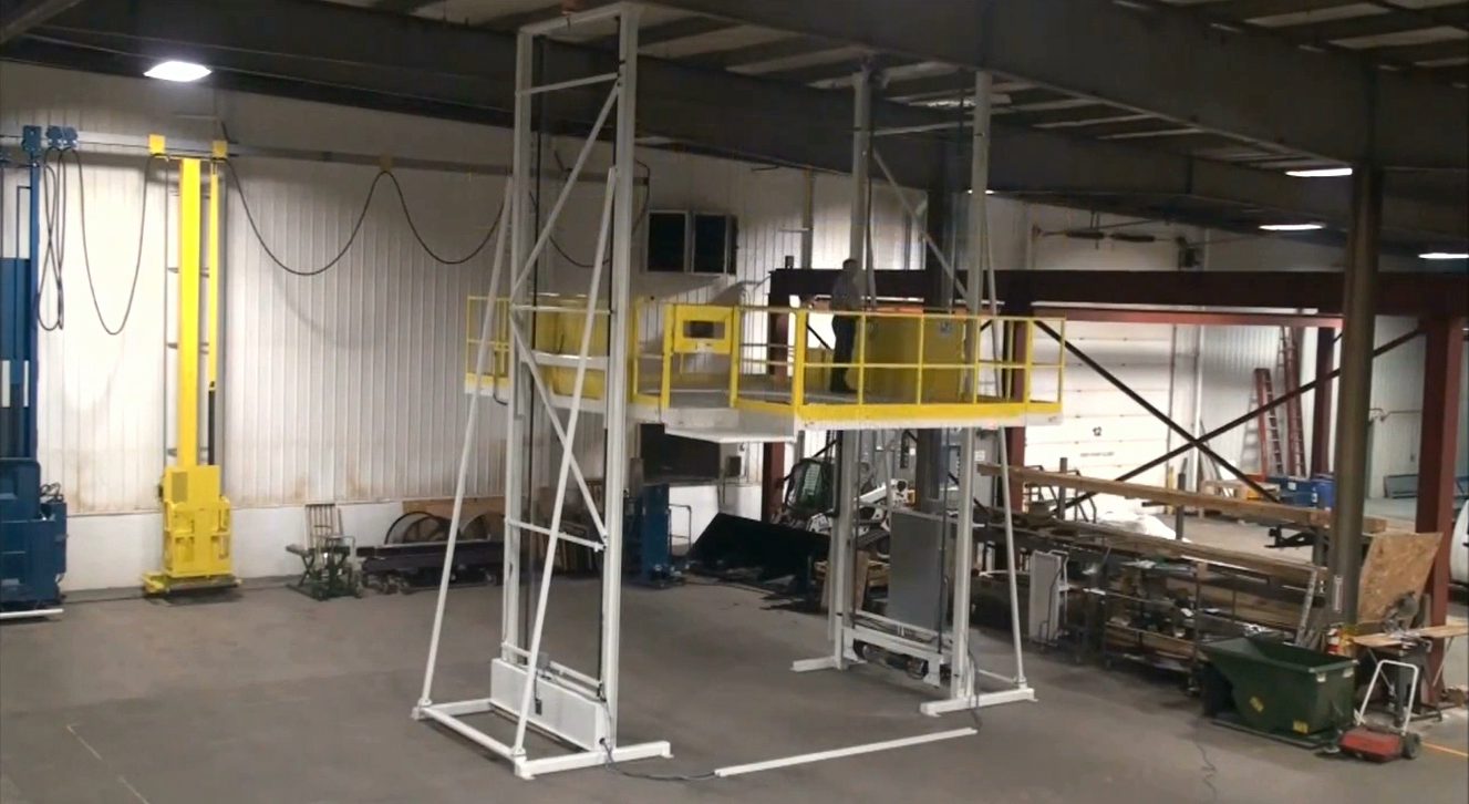 定制12噸麥克漢姆輪帶傾斜甲板升降臺(tái)-加長(zhǎng)型工廠(chǎng)升降機(jī)