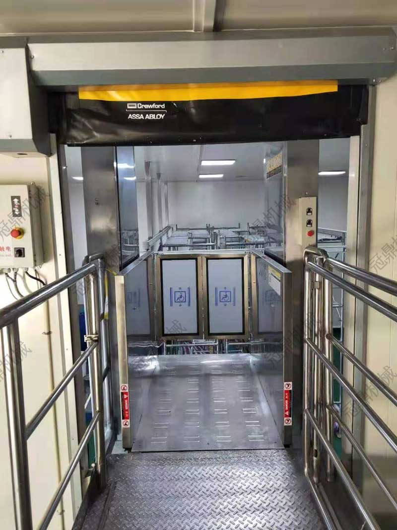 轎廂采用采用食品級(jí)專(zhuān)用不銹鋼,轎底采用花紋不銹鋼板,色彩淡雅柔和。頂面墻面光反射系數(shù)0.5-0.8,地面0.15-0.35左右。板業(yè)、平面顯示器制造行業(yè)、生化制藥工業(yè)等高度精密的工業(yè)無(wú)塵環(huán)境中。
